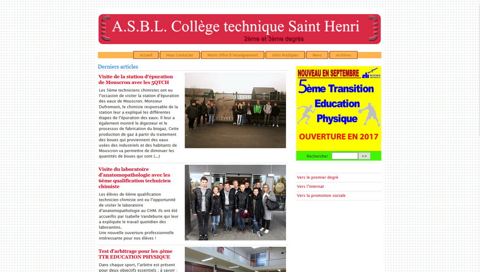 Le site internet du Collège Technique Saint Henri de Mouscron en Belgique.