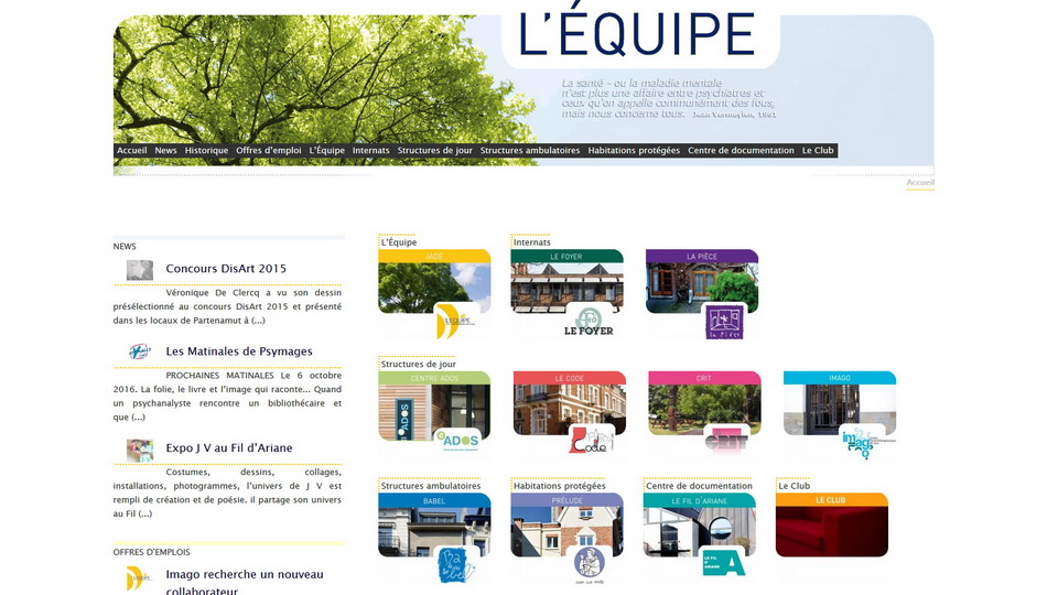 Le site Internet de l’Equipe qui réunit les Internats, les Structures de jour, les Structures ambulatoires, les Habitations protégées, le Centre de documentation, Le club.